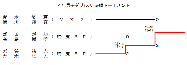 | 天谷 結人 吉木 陽人 (鳴鹿SP) | ○ 15-13 15-12 | ○ 15- 2 15- 2 | 1 |