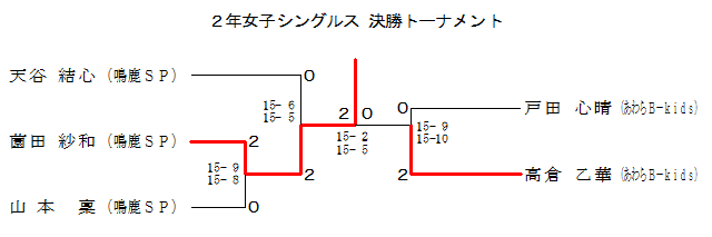 | 2年女子シングルス Cブロック | 戸田 | 山本 | 柳橋 | 順位 |
